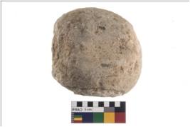 | Description / विवरण | A partially broken specimen of round shaped hammerstone with battered periphery along with the circumference. It is broken from middle portion. It is made up of quartz. |