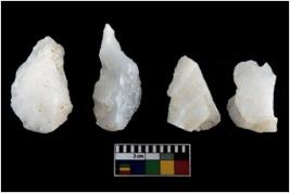| Description / विवरण | There are n-4 of intact utilized flakes made up of Quartz. Some of them have bulge of percussion and some are flat flakes. |