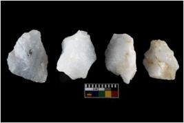| Description / विवरण | There are n-4 of intact utilized flakes made up of Quartz. Some of them have bulge of percussion and some are flat flakes. |