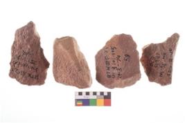 | Description / विवरण | Four worked utilised flakes. Many a times tapering and pointed at one end. |