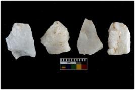 | Description / विवरण | There are n-4 of intact utilized flakes made up of Quartz. Some of them have bulge of percussion and some are flat flakes. |