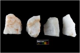 | Description / विवरण | There are n-4 of intact utilized flakes made up of Quartz. Some of them have bulge of percussion and some are flat flakes. |