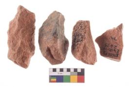 | Description / विवरण | Four worked utilised flakes. Many a times tapering and pointed at one end. |