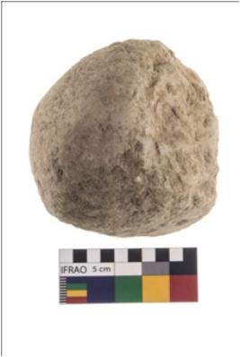 | Description / विवरण | A partially broken specimen of roughly round shaped hammerstone with battered periphery along with the circumference. It is broken from middle portion. It is made up of quartz. |
