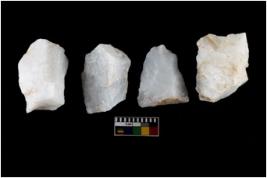 | Description / विवरण | There are n-4 of intact utilized flakes made up of Quartz. Some of them have bulge of percussion and some are flat flakes. |