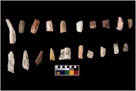 | Description / विवरण | There 20 no. of blades of material chert. Some of them are points. All the blades are retouched and having sharp edges. |