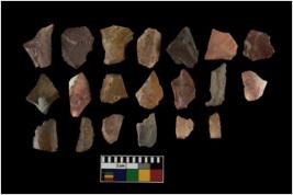 | Description / विवरण | There are n-20 of intact flake cores made up of chert. Some of them have bulge of percussion and some are flat flakes. |