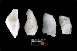 | Description / विवरण | There are n-4 of intact utilized flakes made up of Quartz. Some of them have bulge of percussion and some are flat flakes. |