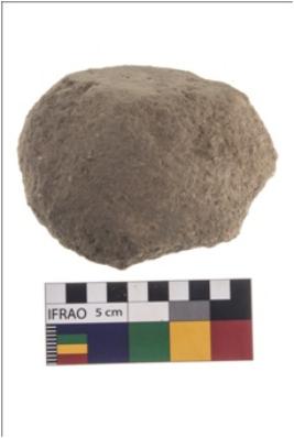 | Description / विवरण | A partially broken specimen of roughly round shaped slingball with battered periphery. It is almost broken from middle portion. It is made up of quartz. |