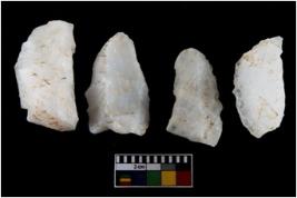 | Description / विवरण | There are n-4 of intact utilized flakes made up of Quartz. Some of them have bulge of percussion and some are flat flakes. |