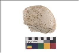 | Description / विवरण | A partially broken specimen of roughly globular shaped and flattish hammerstone with battered periphery along with the circumference. It is flat at one end and broken from one end. It is made up of quartz. |