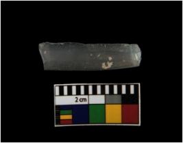 | Description / विवरण | The blade specimen is a normal parallel sided blade with a blunted back. Created by symmetrical and longitudinal flaking. This blade has a trapezium thin section. |