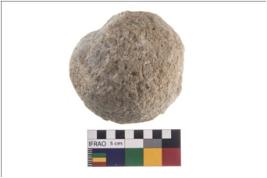 | Description / विवरण | A partially broken specimen of roughly globular shaped hammerstone with battered periphery along with the circumference. It is broken from end portion. It is made up of quartz. |