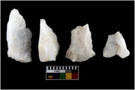 | Description / विवरण | There are n-4 of intact utilized flakes made up of Quartz. Some of them have bulge of percussion and some are flat flakes. |