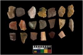 | Description / विवरण | There are n-20 of intact flake cores made up of chert. Some of them have bulge of percussion and some are flat flakes. |