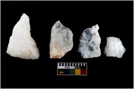 | Description / विवरण | There are n-4 of intact utilized flakes made up of Quartz. Some of them have bulge of percussion and some are flat flakes. |