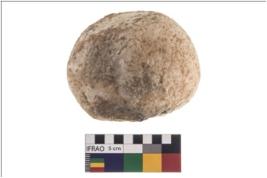 | Description / विवरण | A partially broken specimen of round shaped and flattish hammerstone with battered periphery along with the circumference. It is flat at one end and broken from middle portion. It is made up of quartz. |