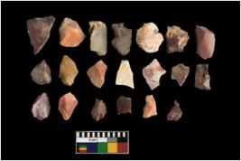 | Description / विवरण | There are n-20 of intact flake cores made up of chert. Some of them have bulge of percussion and some are flat flakes. |