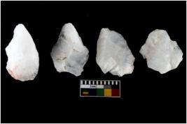 | Description / विवरण | There are n-4 of intact utilized flakes made up of Quartz. Some of them have bulge of percussion and some are flat flakes. |