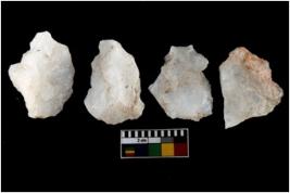 | Description / विवरण | There are n-4 of intact utilized flakes made up of Quartz. Some of them have bulge of percussion and some are flat flakes. |