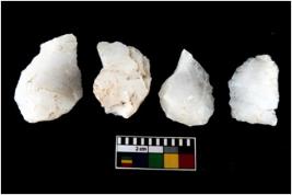 | Description / विवरण | There are n-4 of intact utilized flakes made up of Quartz. Some of them have bulge of percussion and some are flat flakes. |