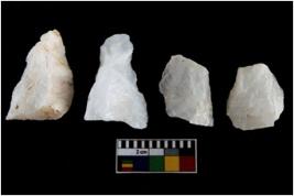 | Description / विवरण | There are n-4 of intact utilized flake cores made up of Quartz. Some of them have bulge of percussion and some are flat flakes. |