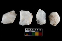 | Description / विवरण | There are n-4 of intact utilized flake cores made up of Quartz. Some of them have bulge of percussion and some are flat flakes. |