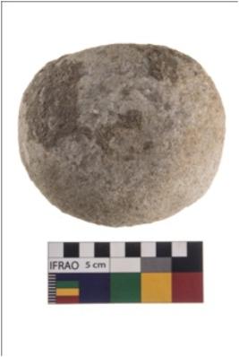 | Description / विवरण | A complete specimen of roughly oblong shaped hammerstone with battered periphery along with the circumference. It is made up of quartz. |