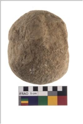 | Description / विवरण | A partially broken specimen of roughly round shaped hammerstone with battered periphery along with the circumference. It is flat on one end. It is made up of quartz. |
