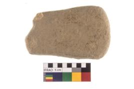 | Description / विवरण | A Partially broken specimen of a rectangular shaped mueller cum pounder stone with battered surfaced and truncated end to hold the object. |