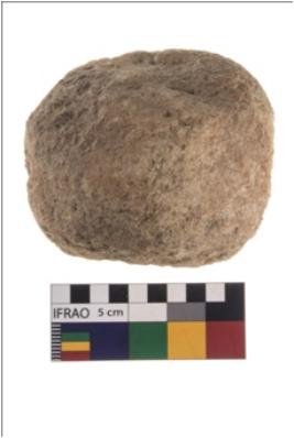 | Description / विवरण | A partially broken specimen of roughly round shaped hammerstone with battered periphery along with the circumference. It is broken at edges. It is made up of quartz with reddish colour shade. |