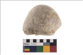 | Description / विवरण | A partially broken specimen of roughly round shaped hammerstone with battered periphery along with the circumference. It is used on all sides as the hammerstone almost broken. It is made up of quartz. |