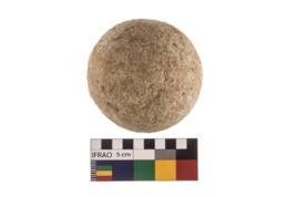 | Description / विवरण | A partially broken specimen of stone sling ball, It is roughly rounded shaped and small in size, with smooth surface. |