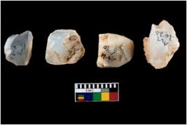 | Description / विवरण | A specimen of fluted core having several broad fluted marks indicating the detached blades from it |