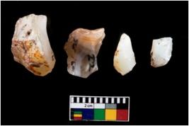 | Description / विवरण | A specimen of fluted core having several broad fluted marks indicating the detached blades from it |