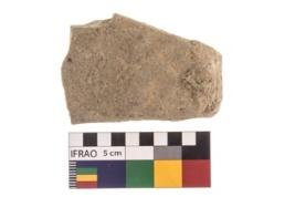 | Description / विवरण | A partially broken specimen of a oval shaped mueller stone with oval section. |