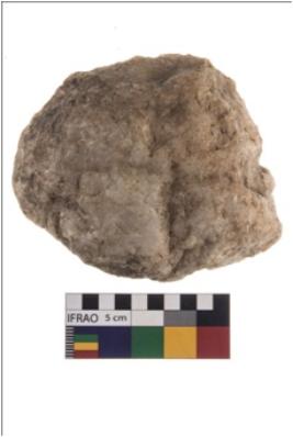 | Description / विवरण | A partially broken specimen of roughly round shaped hammerstone with battered periphery along with the circumference. It is broken from one end. It is made up of quartzite with reddish colour shade in it. |