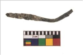 | Description / विवरण | A partially broken specimen of slightly curved shaped copper rod. It is bulbous at one end. It is heavily corroded and very fragile in nature. |