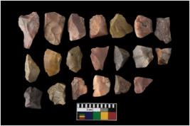 | Description / विवरण | There are n-20 of intact flake cores made up of chert. Some of them have bulge of percussion and some are flat flakes. |