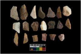 | Description / विवरण | There are n-20 of intact flake cores made up of chert. Some of them have bulge of percussion and some are flat flakes. |
