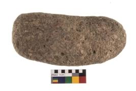 | Description / विवरण | A partially broken specimen of an oval shaped rubber stone with rectangular section and concave end. |