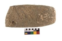 | Description / विवरण | A partially broken specimen of an oval shaped rubber stone with rectangular section and concave end. |