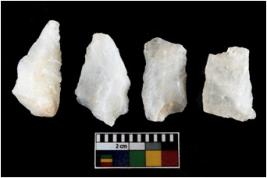 | Description / विवरण | There are n-4 of intact utilized flake cores made up of Quartz. Some of them have bulge of percussion and some are flat flakes. |
