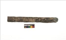 | Description / विवरण | A partially broken specimen of a chisel, with one flattened end and squarish in section. It is a thick piece of copper, rough surface and heavily corroded. |
