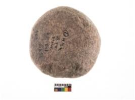 | Description / विवरण | A partially broken anvil, roughly egg shaped upper surface slightly convex under surface, highly convex and shows original peeble surface, cross section roughly oval with one end broader than the other. |