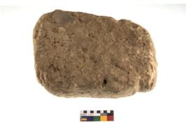 | Description / विवरण | A partially broken specimen of a clay brick. It is flat rectangular shaped with smooth surface. |
