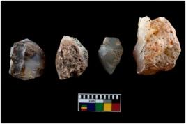 | Description / विवरण | A specimen of fluted core having several broad fluted marks indicating the detached blades from it |