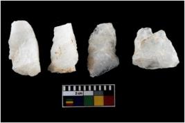 | Description / विवरण | There are n-4 of intact utilized flake cores made up of Quartz. Some of them have bulge of percussion and some are flat flakes. |