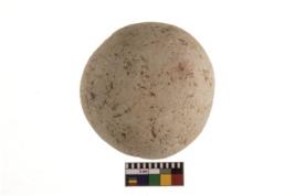 | Description / विवरण | A partially broken specimen of stone sling ball, It is roughly rounded shaped and small in size, with smooth surface |
