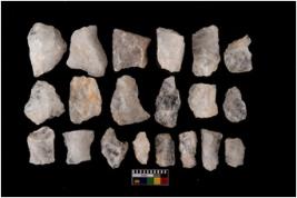 | Description / विवरण | There are n-20 of intact flake cores made up of Quartz. Some of them have bulge of percussion and some are flat flakes. |
